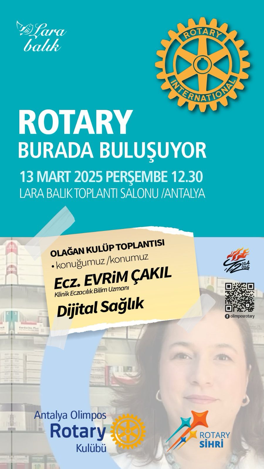 kulüp toplantısı, evrim çakıl, dijital sağlık, rotary, rotary türkiye, 2430 bölge, lara balık, antalya, rotary inetrnational, olimpos, olimpos rotary