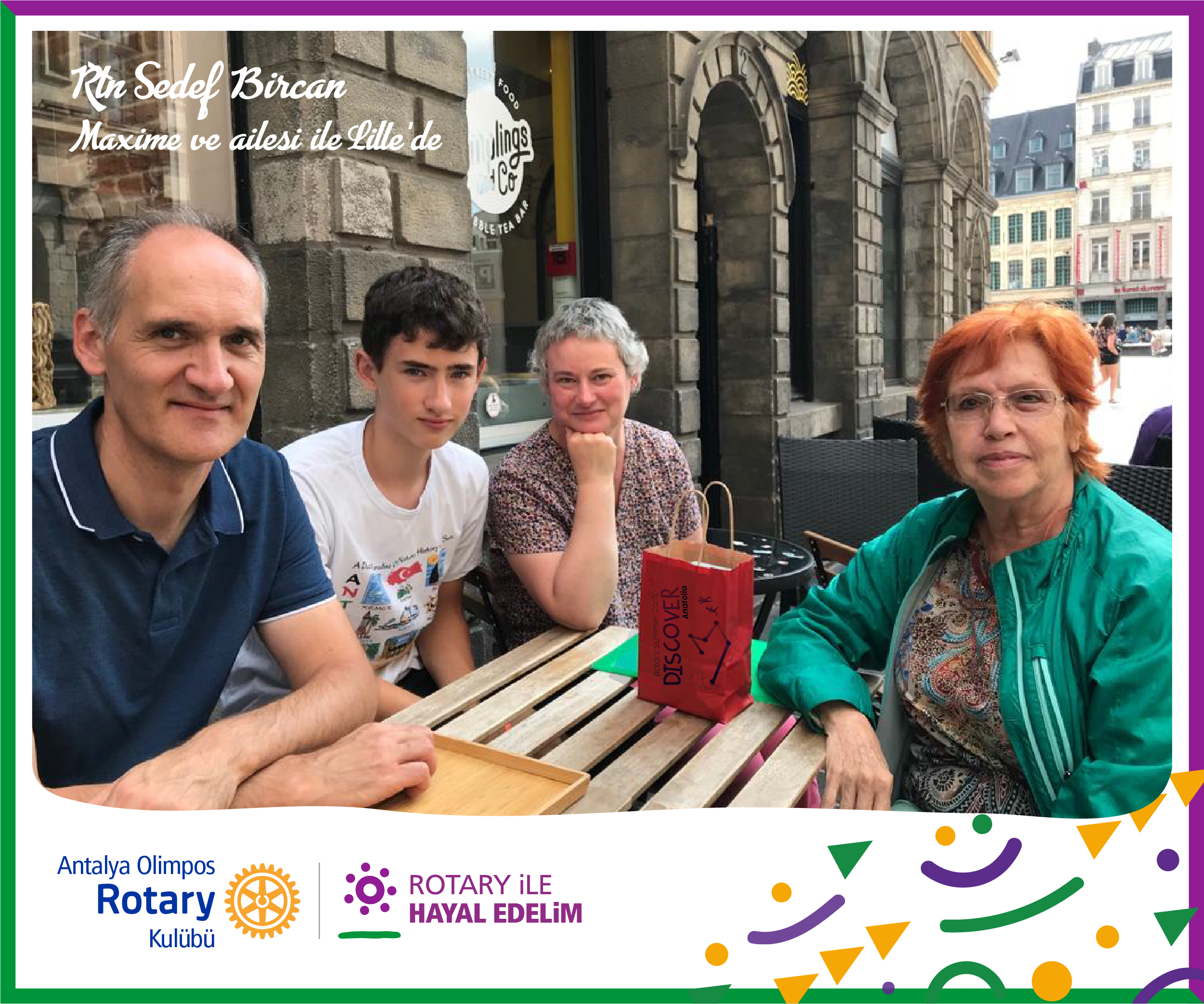 geçmiş dönem başkanımız, olimpos rotary kulübü üyemiz sevgili Rtn. Sedef Bircan bize Fransa'dan mesaj göndermiş; "Bugün Discover Anatolia projemiz kapsamında kulübümüzün misafirlerinden Fransız Maxime ve annesi babası ile Lille şehrinde buluştuk. Baba Lille Üniversitesi’nde bilgisayar profesörü; annesi Lise’de Fransızca öğretmeni. Çok duygulu anlar yaşadık. Maxime gruptaki diğer gençlerle irtibat halinde olduğunu söyledi..." kendisine çok teşekkür ediyor, iyi eğlenceler diliyoruz...
