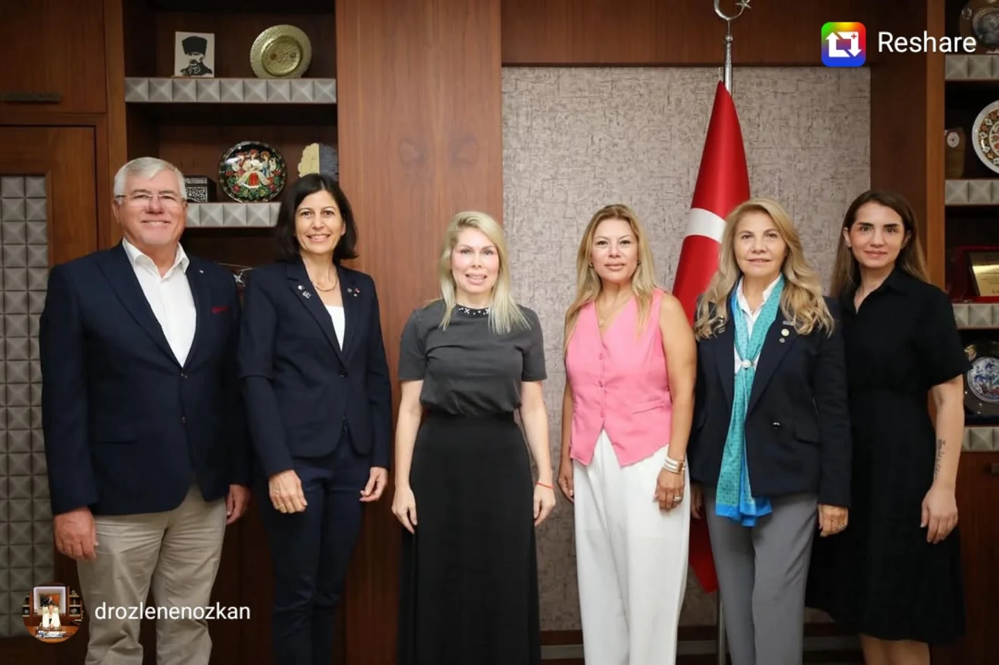 Prof.Dr. Özlenen Özkan sosyal medya paylaşımı: "Olimpos Rotary Kulübü’nden Dr. Tuğçe Tülümen, Cüneyt Koşu, Tuba Subaşı ve Perge Rotary Kulübü’nden Nükhet Sarıca ile Özge Kara’yı üniversitemizde konuk ettim. Samimi sohbetleri ve nazik ziyaretleri için teşekkür ediyorum. "