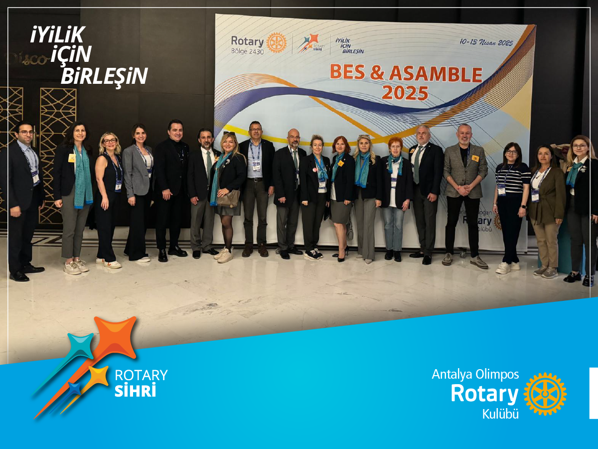 Antalya Olimpos Rotary Kulübü 2025/26 Dönemi BES & ASAMBLE 2025 "10-13 Nisan 2025’de, Alanya’da, Haydarpaşa Palace Hotel’de, Tandoğan Rotary Kulübü’nün ev sahipliğinde, 2430 Bölge kulüplerinin geçmiş ve gelecek dönem guvernörlerinin, bölge görevlilerinin, başkanlarının, yönetim kurulu ve üyelerinin yoğun katılımı ile gerçekleşti. 2025/26 dönem guvernörü Can Çığırgan & Suar ile Prizma Ekibi, “İyilik İçin Birleşin” mottosuyla bir araya gelen dönemin “Dönüştüren Liderleri ”ne motive edici, bilgilendirici paylaşımlarının yanı sıra son derece aktif, güzel aynı zamanda eğlenceli bir asamble yaşattılar. Antalya Olimpos Rotary Kulübü bu toplantıya gelecek dönem başkan &eşi, yönetim kurulu ve bölge görevlileri ile katıldı. Dönüştüren Başkanlar, İyilik İçin Birleşecekleri projelerde buluşmak üzere söz vererek ayrıldılar." Rtn Tuba Subaşı 2025/26 Dönem Bşk.