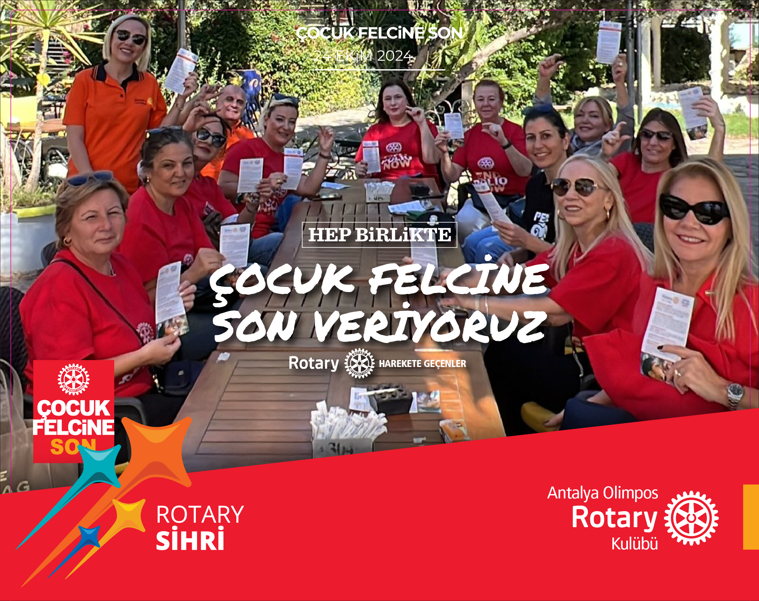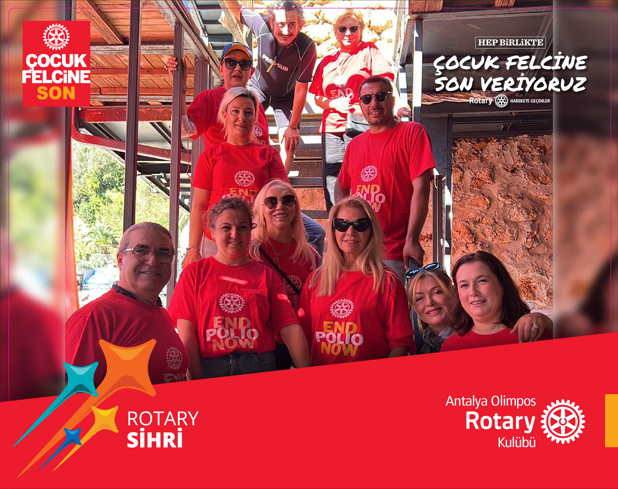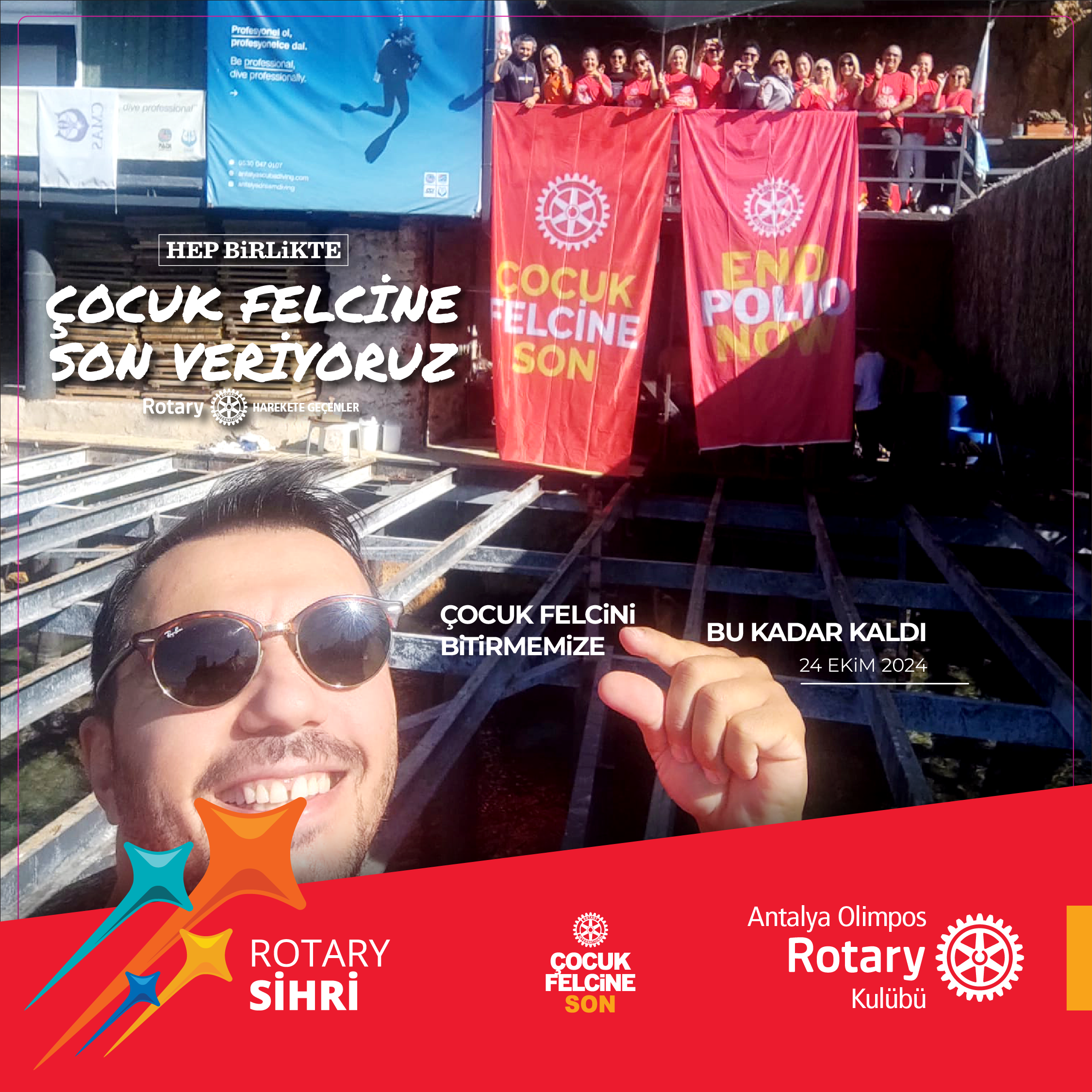 24 Ekim Dünya Polio Günü Uluslararası Rotary Kulüplerinin, uzun yıllardır çocuk felcine dikkat çekmek için yaptığı etkinliklere, bir yenisi daha eklendi. Uluslararası Rotary nin 1985 ylında başlattığı Polio Plus programı, global kapsamda çocuk felcini yok etme amacıyla yürütülüyor. Lara Rotary Kulübü öncülüğünde, 5 yaş ve altındaki çocuklar için, tedavisi olmayan ölümcül hastalığa dikkat çekmek amacıyla, 24 Ekim Dünya Polio Günü'nde, Antalya'nın Muratpaşa ilçesinde yer alan Konserve Koyunda, çevre temizliği için dalış yapılarak, anlamlı bir farkındalık etkinliği gerçekleştirildi. Düzenlenen etkinliğe, Antalya da faaliyet gösteren Antalya, Olimpos, Aspendos, Kaleiçi, Perge ve Falez Rotary kulüplerinin başkanları ile rotaryen üyeleri ve eşleri de yoğun katılım sağladı. Su altındaki atıkları da toplayarak çevre temizliği gerçekleştiren ekip, denizin metrelerce altında, 24 Ekim Dünya Polio Günü bayrağını da açtı. Rotary kulüpleri, iki farklı ekiple dalış gerçekleştirerek suyu altı çuval çöpten arındırdı. Antalya da bulunan Rotary kulüpleri, önümüzdeki günlerde de farklı dalış etkinlikleri ve toplumsal alanlarda farkındalık temaları gerçekleştirerek toplumsal sorunlara dikkat çekmeyi planlıyor. @antalyaolimposrotary