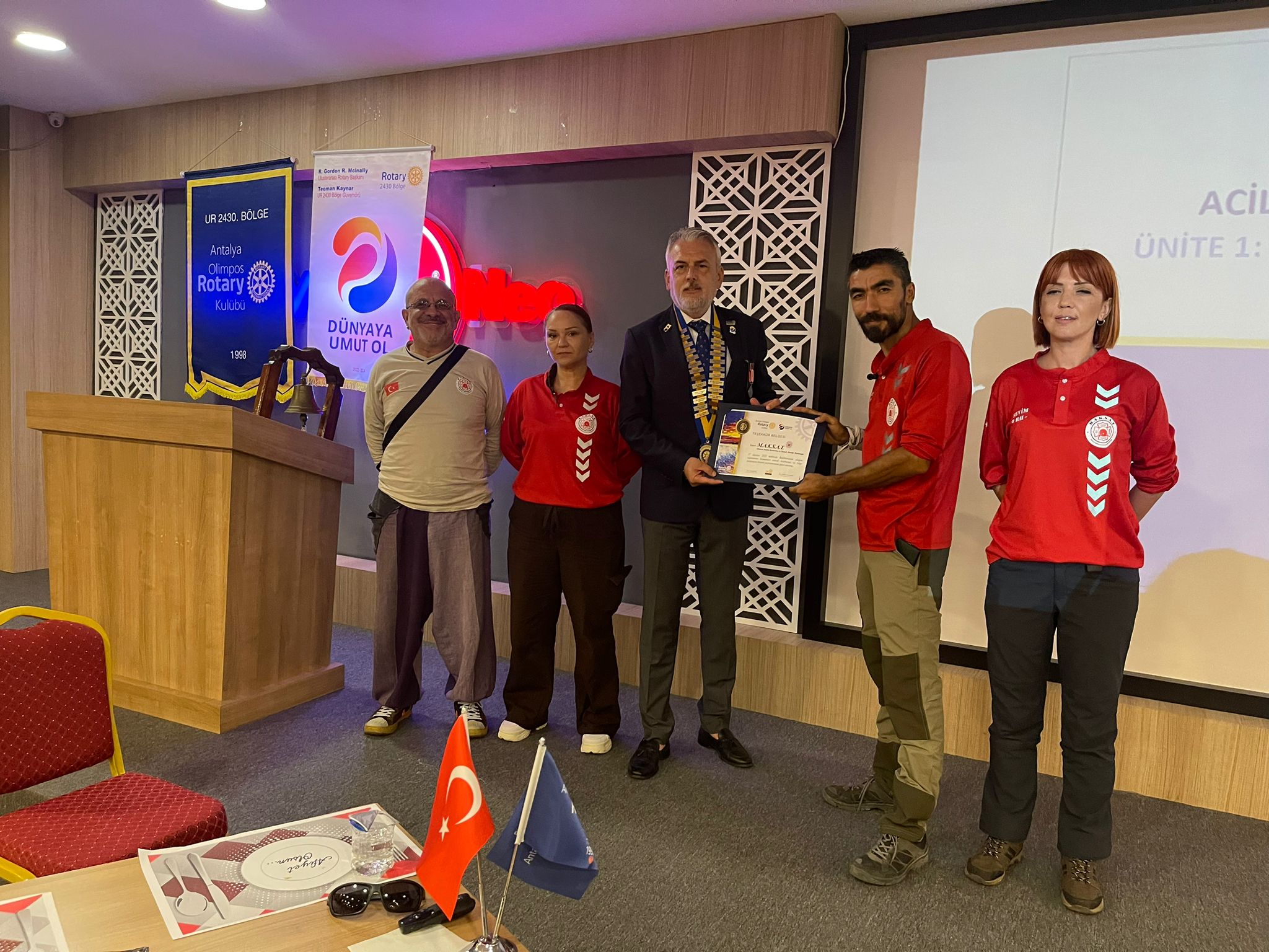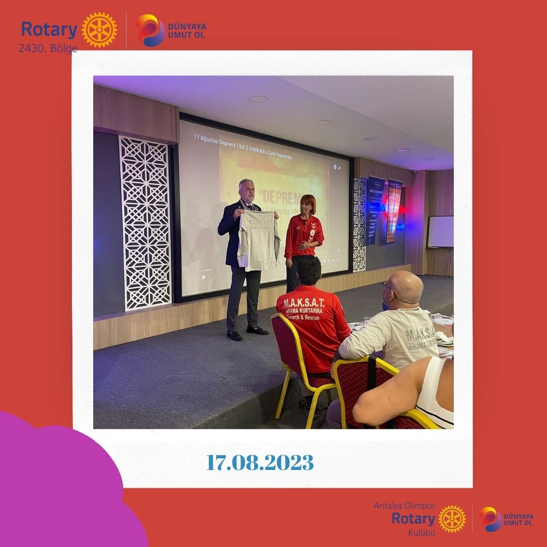 17 Ağustos depreminin yıldönümünde Antalya Olimpos Rotary Kulübü olarak AFET FARKINDALIK SEMİNERİ yaptık. M.A.K.S.A.T Arama Kurtarma ekibi tarafından verilen seminere üyelerimiz, roteşlerimiz, gönüllülerimiz ve konuklarımız katıldı. 30 katılımcı ile gerçekleştirdiğimiz seminerde afetlere karşı alınması gereken önlemler ve afet hazırlıklarının detaylarından bahsedildi.