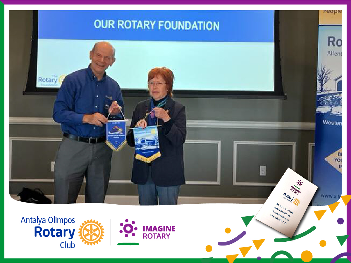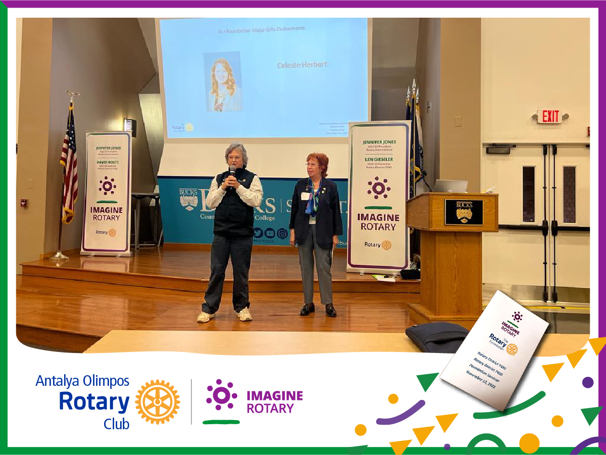 “US VAKIF SEMİNERİ SUNUMU/ Rtn SEDEF BİRCAN” Rtn. Sedef Bircan UR 7430. Bölge ve 7450. Bölge tarafından organize edilen Vakıf Seminerine, bölgemizde gerçekleştirilen belli başlı küresel bağış projelerini sunmak, ICC (Ülkelerarası Komiteler) faaliyetleri ve "Cadre" hakkında bilgi vermek amacıyla konuk konuşmacı olarak katılmıştır.