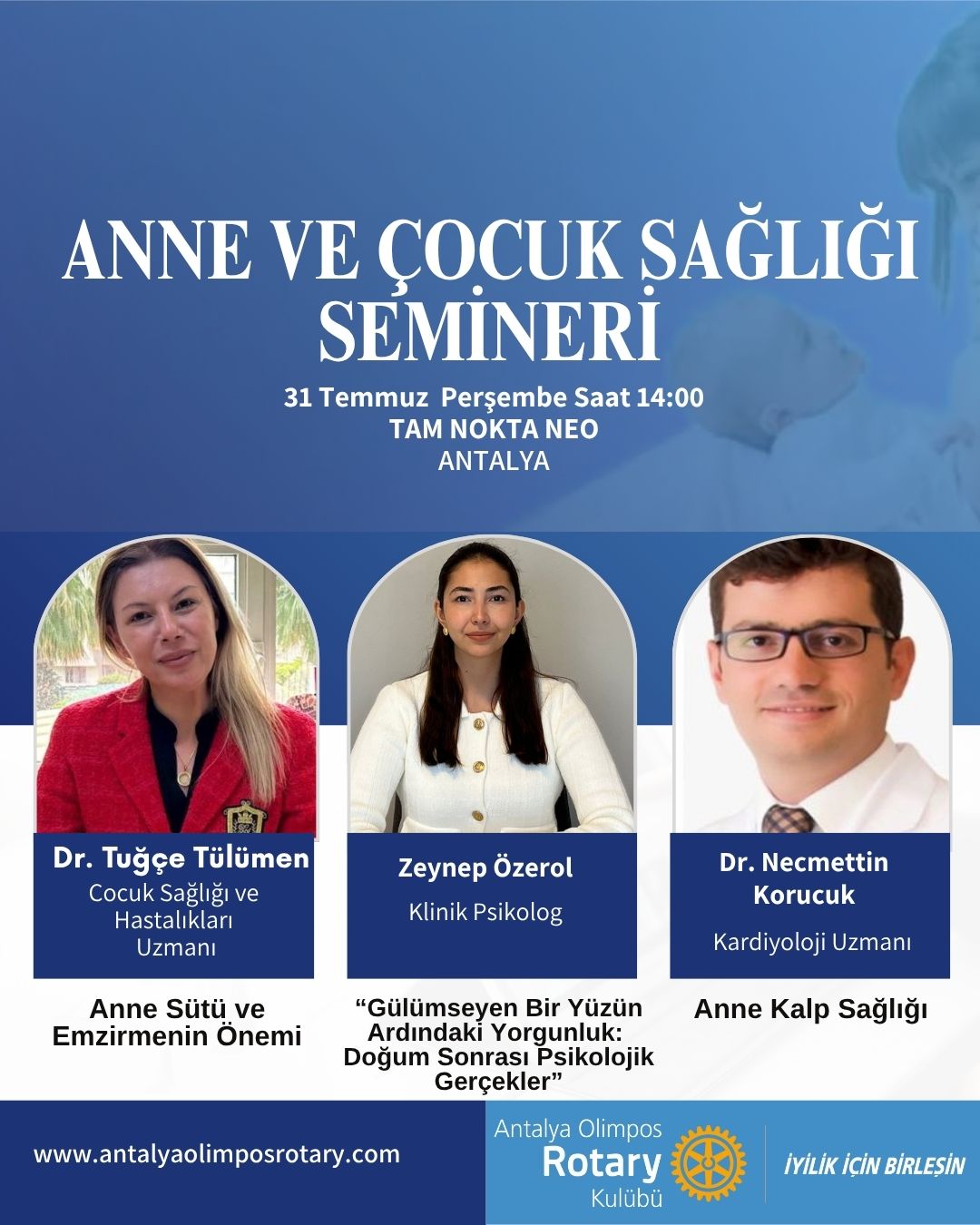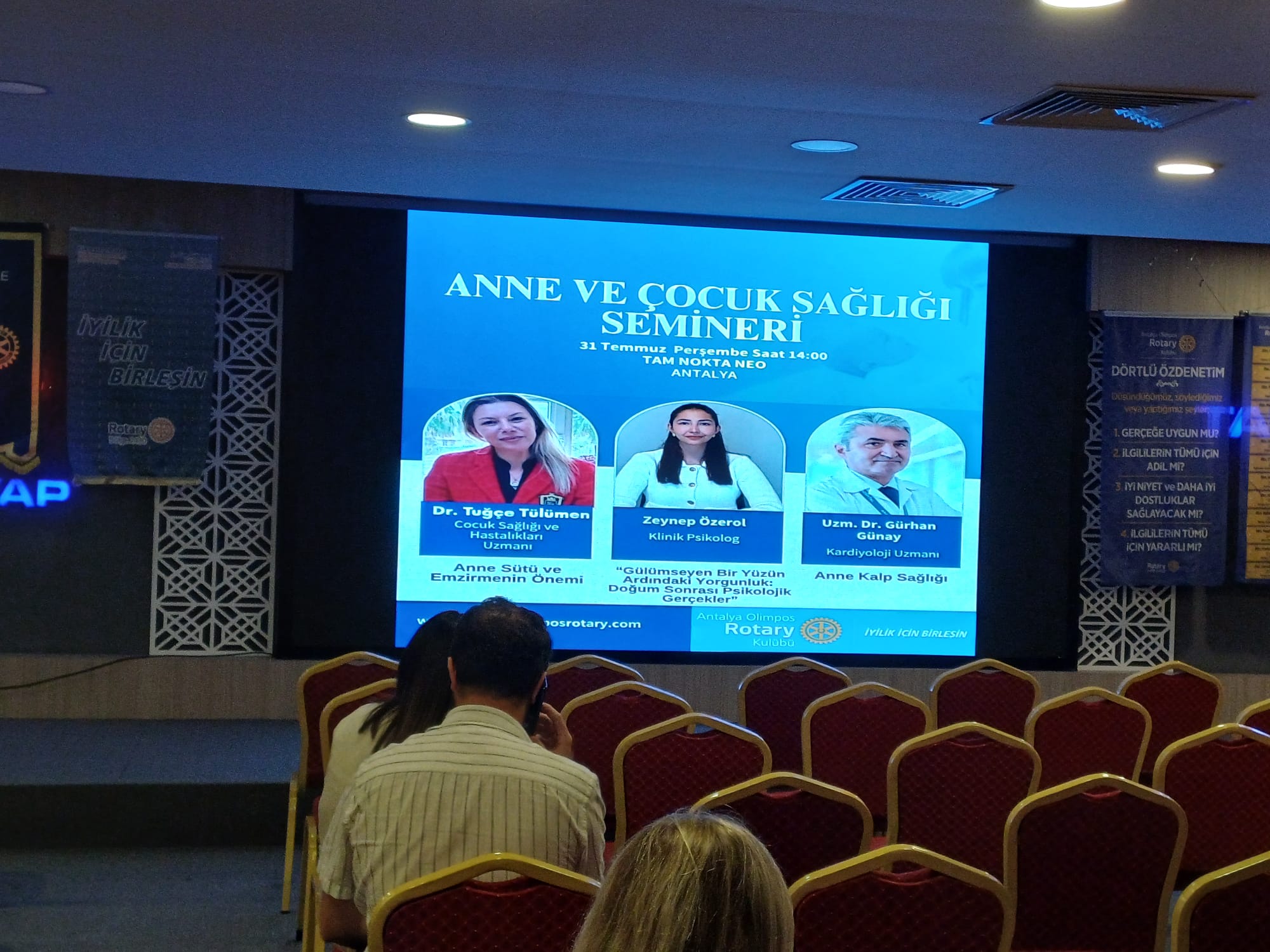değerli Rotary dostları, Bugün yine ne kadar güçlü bir aile olduğumuza tanık olduk; Anne ve Çocuk Sağlığı Ayı kapsamında gerçekleştirdiğimiz projede, Sevgili Dostumuz Rtn. Tuğçe Tülümen hem konuşmacı konuk oldu hem de projemize destek verdi. Klinik Psikolog Zeynep Özerol tarafından Görünmeyeni Gör mottosu ile ‘’Gülümseyen Bir Yüzün Ardındaki Yorgunluk : Doğum Sonrası Psikolojik Gerçekler‘’ isimli sunum gerçekleştirildi. TAM NOKTA NEO’da gerçekleşen bu seminerde ; özel bir dönem olan doğum sonrası sürecin psikolojik yansımalarına dikkat çekildi. Seminerde bunların üstesinden gelmek için önerilerde de bulunuldu. Konuşmacı konuğumuza teşekkür ederiz. Sevgili GDB Kerim Tükenmez&Hülya bize Tam Nokta Neo’nun kapılarını açtılar ve harika ev sahipliği gerçekleştirdiler. Katılımcı Dostlarımız Projeye değer kattı. Her birinize ayrı ayrı çok teşekkür ediyor, Sevgilerimi gönderiyorum. Nicelerinde buluşmak dileğiyle… Rotaryen Sevgi ve Saygılarımla Rtn. Tuba Subaşı