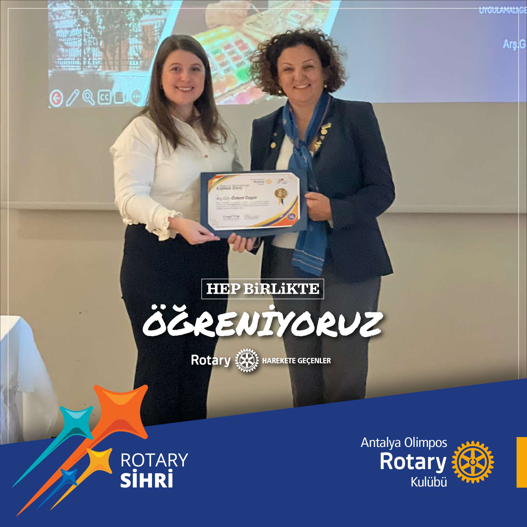 Antalya Olimpos Rotary Kulübü haftalık olağan toplantısı 14.11.2024, 12.30 da @larabalikantalya da yapıldı. Toplantıda konuğumuz Akdeniz Ünv. Arş.Gör. Özlem Özgür bizlere Gerontoloji nin ne olduğunu anlattı. @ozlmmozgrr 'e bu güzel sunumu için, katılan üyelerimize de ilgileri ve destekleri için çok teşekkür ediyoruz. Rtn. İlkay Söyüncü 2024/25 Dönem Bşk