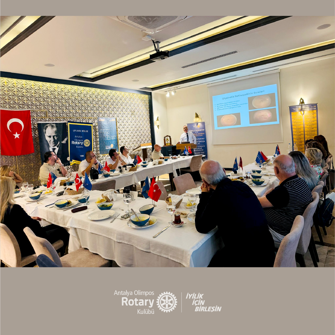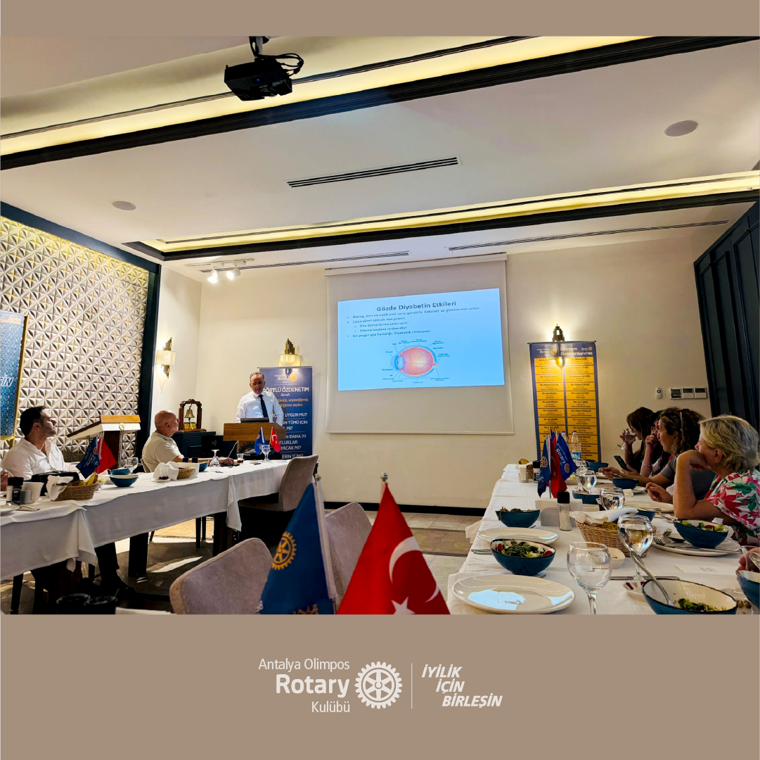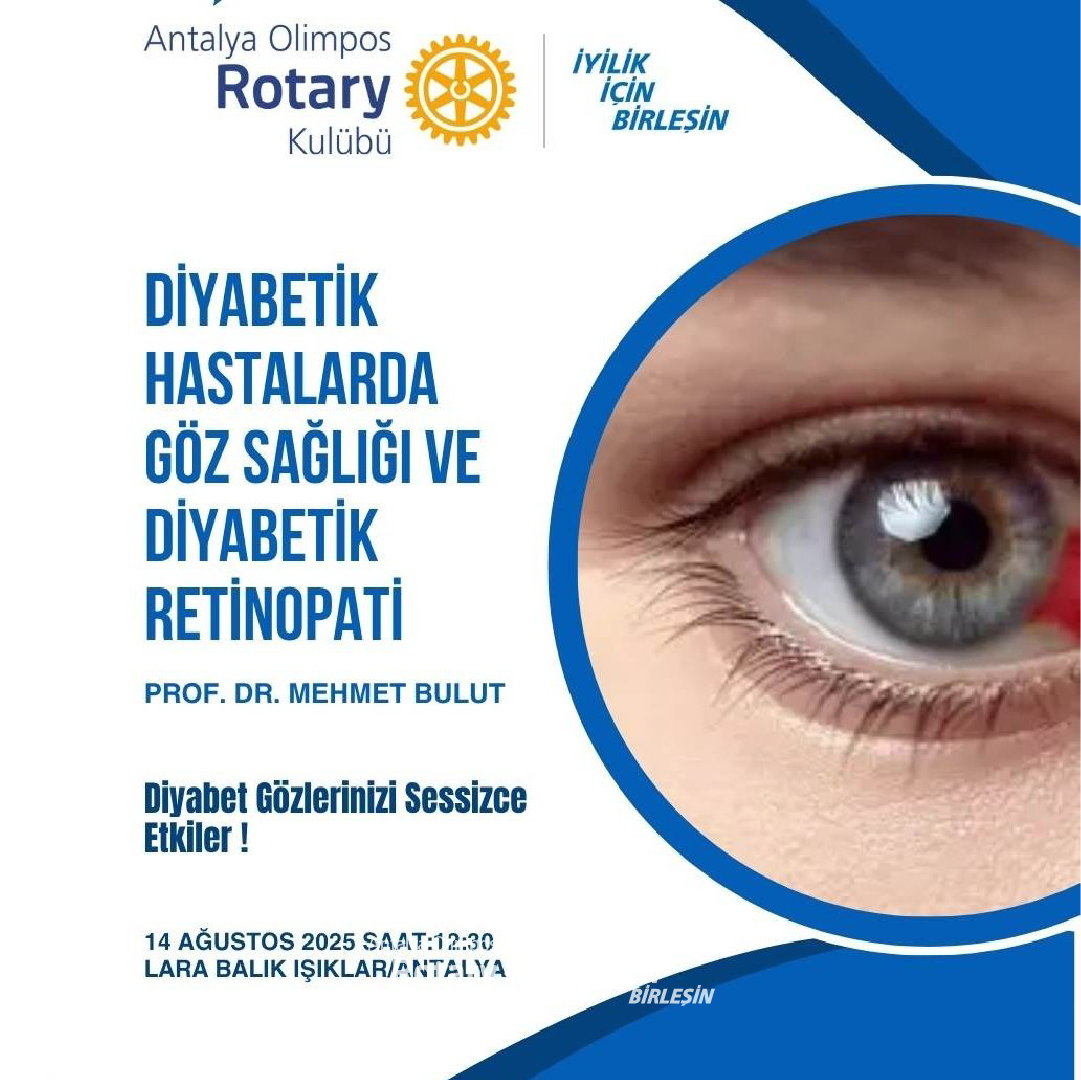 Sevgili Dostlarımız, 14 Ağustos 2025 tarihinde yapılan olağan toplantımızda Göz Hastalıkları Uzmanı Prof. Dr. Mehmet Bulut tarafından "Diyabetik Hastalarda Göz Sağlığı ve Diyabetik Retinopati" hakkında bir sunum gerçekleştirilmiştir. Mehmet Bulut'a bilgi ve deneyimlerini bizimle paylaştığı için teşekkür ediyoruz.
