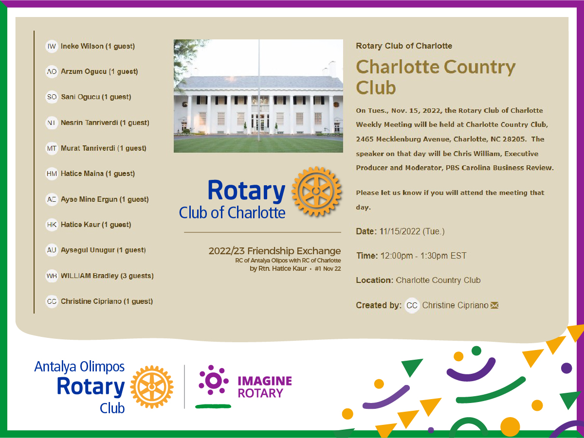 hatice kaur, RFE, rotary friendship exchange, rotary dostluk değişim, USA, charlotte RC, antalyaolimposrotary, olimposrotary, rotary, antalya, dernek, üye, bağış, kampanya, yardım, destek, stk, sivil toplum kuruluşu, 2430bölge, district2430, proje, etkinlik, hizmet, iyilik, servis, kendindenöncehizmet, serviceaboveself, hareketegeçenler, peopleofaction