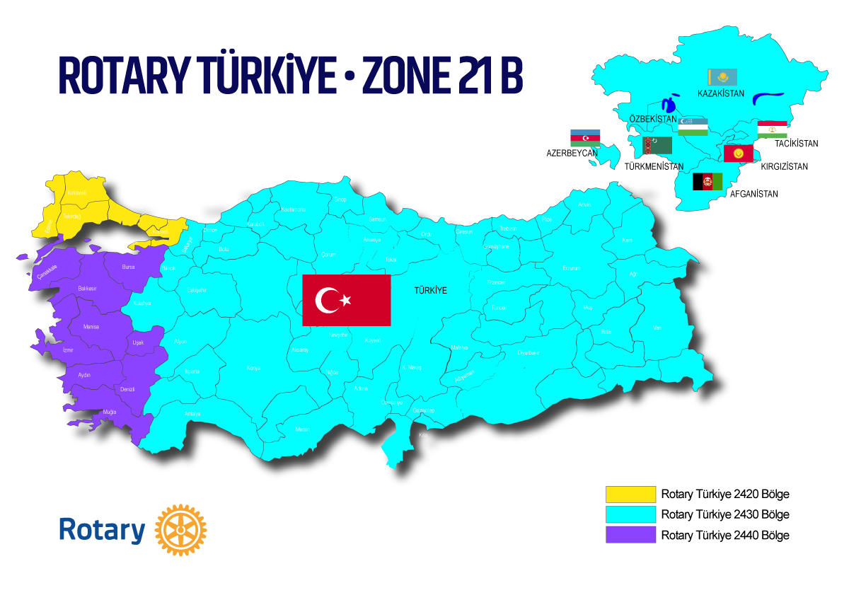 Uluslararası Rotary yapılanması kapsamında ülkemiz 21. Birim (Zone 21) de bulunmaktadır. Zone 21, A ve B olarak iki ayrımda yapılanmıştır.