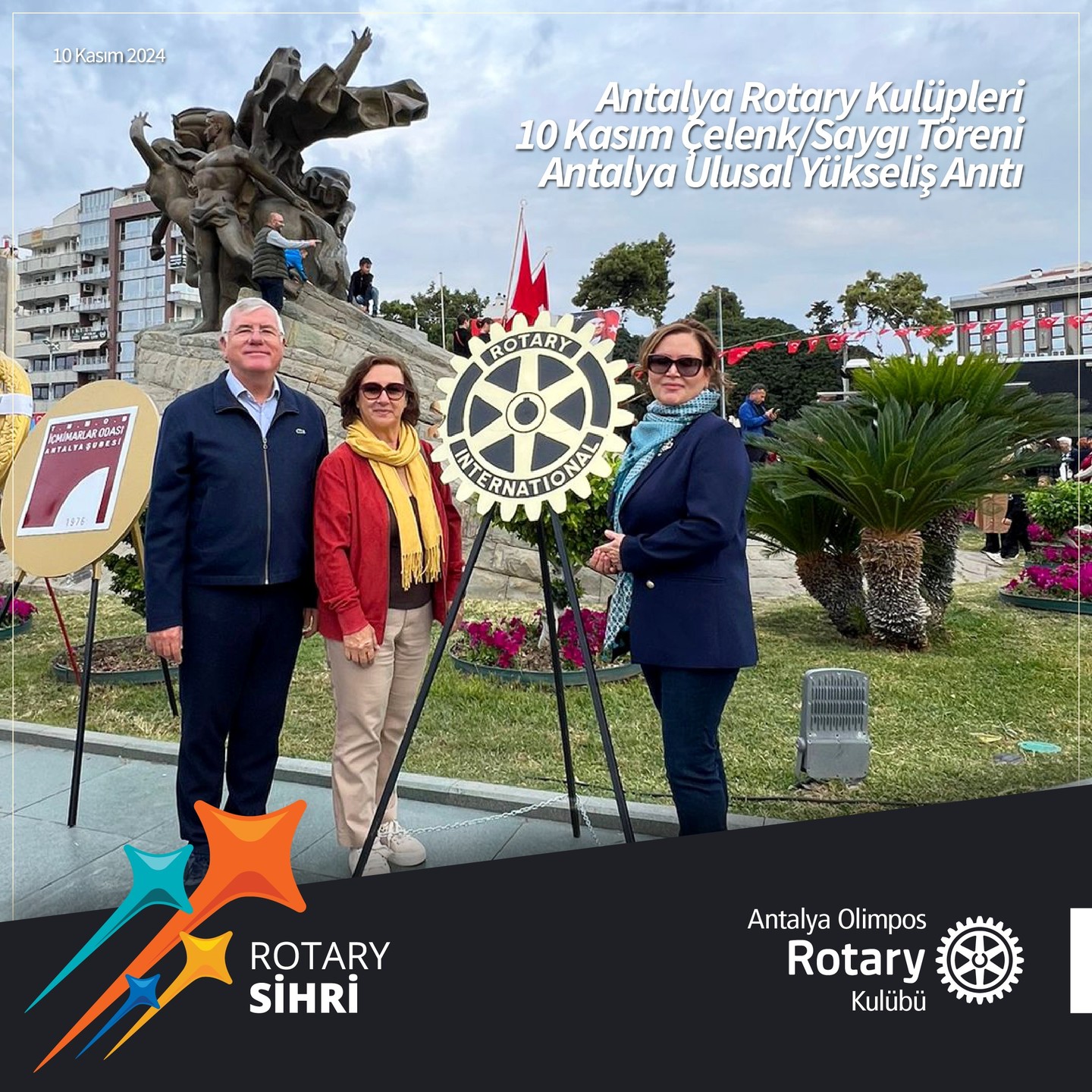 Antalya Ulusal Yükseliş Anıtı'nda kulüp başkanları ve üyeleri ile bir araya geldiler ve Türkiye Cumhuriyeti'nin kurucusunun ebediyete intikalinin yıldönümünde saygılarını sundular. @rotaryinternational
