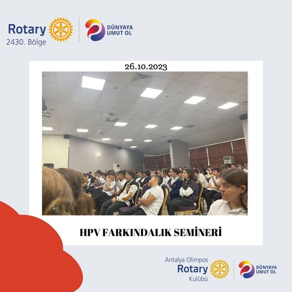 Antalya Olimpos Rotary Kulübü olarak meslek lisesi öğrencilerine '' HPV FARKINDALIK SEMİNERİ'' verdik. Uzman Dr. Berrin Karakuy'un konuşmacı olduğu seminerde gençlerin merak ettiği sorular da cevaplandırıldı. Değerli konuğumuza kıymetli bilgilerini gençler ile paylaştığı için teşekkür ederiz.