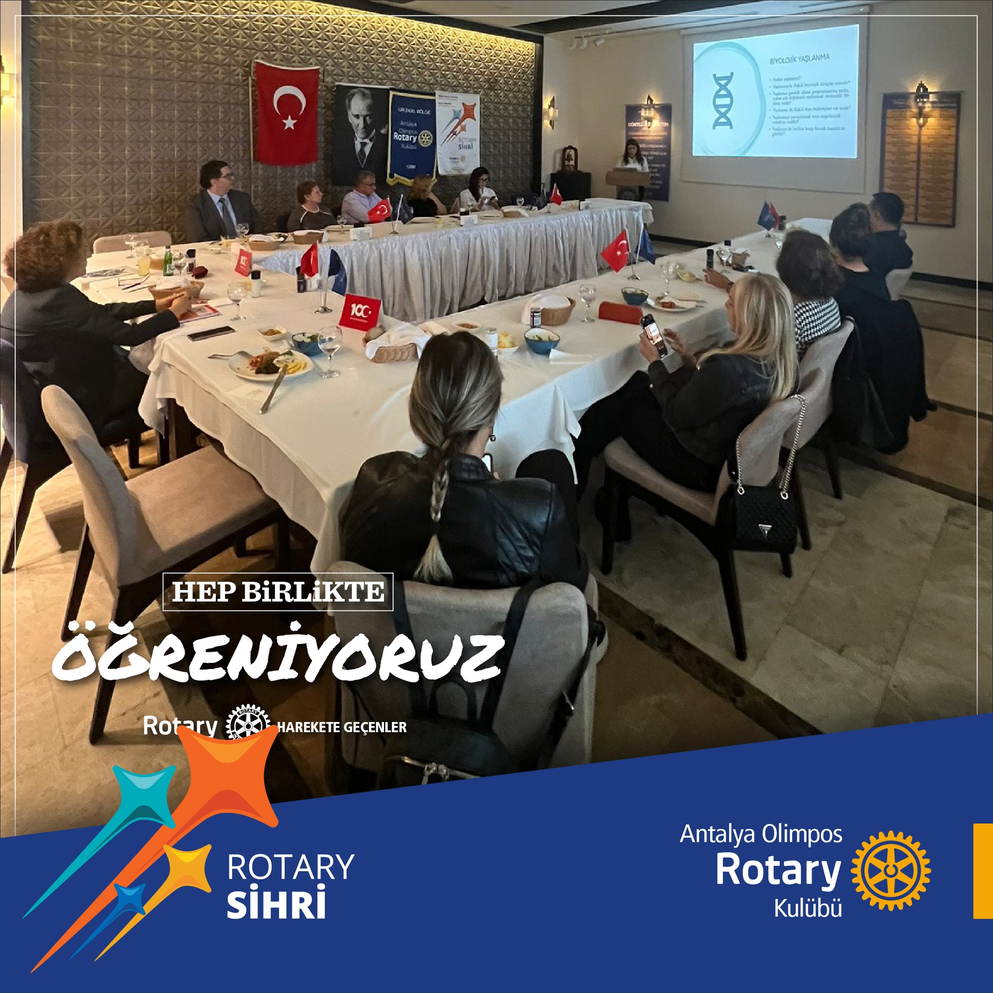 Antalya Olimpos Rotary Kulübü haftalık olağan toplantısı 14.11.2024, 12.30 da @larabalikantalya da yapıldı. Toplantıda konuğumuz Akdeniz Ünv. Arş.Gör. Özlem Özgür bizlere Gerontoloji nin ne olduğunu anlattı. @ozlmmozgrr 'e bu güzel sunumu için, katılan üyelerimize de ilgileri ve destekleri için çok teşekkür ediyoruz. Rtn. İlkay Söyüncü 2024/25 Dönem Bşk